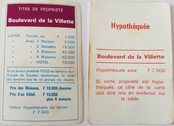 CARTE BOULEVARD DE LA VILLETTE (MONOPOLY)
