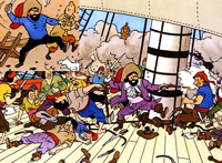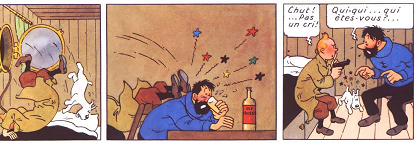 CAPITAINE HADDOCK GASPILLE UNE BOUTEILLE EN LA LANÇANT POUR STOPPER UN MÉCHANT