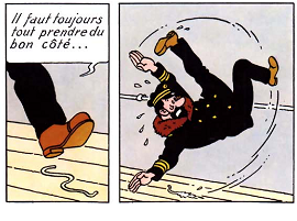 CAPITAINE HADDOCK TOMBE EN S'ÉCHOUANT AVEC SA BARQUE