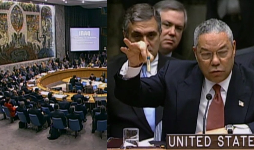 COLIN POWELL AFFIRME À L'ONU QUE SADDAM HUSSEIN POSSÈDE DES ARMES BIOLOGIQUES