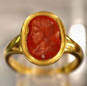Bague sertie d'une intaille gravée d'un profil d'homme barbu