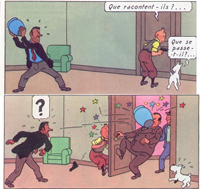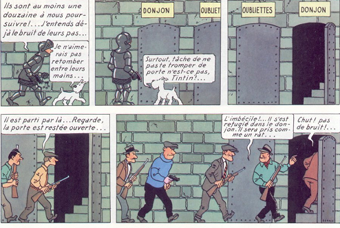 TINTIN ÉCHAPPE AUX GANGSTERS EN INVERSANT LES PANNEAUX DONJON ET OUBLIETTE