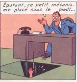 UN GANGSTER PIÈGE TINTIN EN OUVRANT UNE TRAPPE