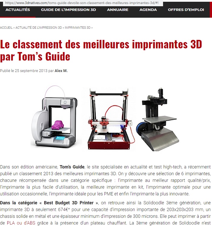 CLASSEMENT DES MEILLEURES IMPRIMANTES 3D PAR TOM'S GUIDE