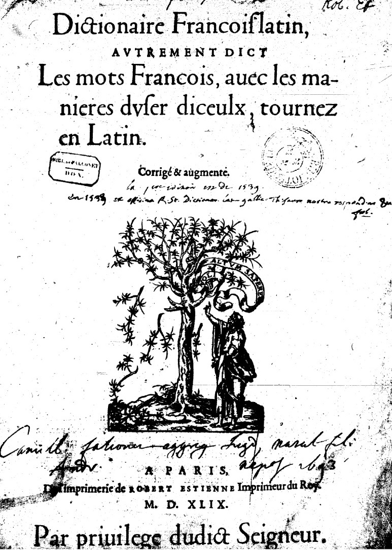 DICTIONNAIRE LATIN-FRANÇAIS ET DICTIONNAIRE FRANÇAIS-LATIN DE ROBERT ESTIENNE